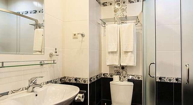 Расчетное время Ахиллеон Парк Бутик 14:00. Весь номерной фонд оборудован ванной комнатой с принадлежностями,